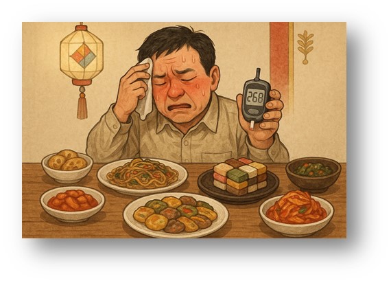 추석은 송편, 전, 잡채, 갈비찜 등 전통 음식이 풍성하게 차려지는 시기입니다. 그러나 이 음식들은 대부분 탄수화물과 지방, 나트륨이 많아 당뇨 환자에게는 혈당 조절을 어렵게 만드는 요소가 됩니다. 제가 예전에 당뇨를 관리하는 친척 어른과 함께 명절을 보낸 적이 있는데, 한 번의 과식으로 혈당이 크게 상승해 몸이 무거워지고 어지러움을 호소하셨던 경험이 있습니다. 이처럼 당뇨 환자는 명절에 조금만 방심해도 건강이 위협받을 수 있습니다.